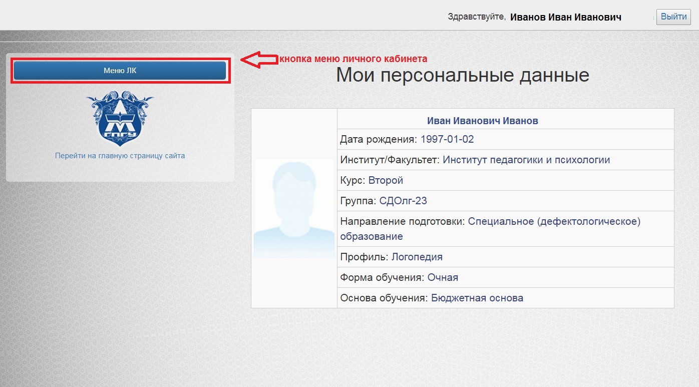 обратно) его можно нажав на кнопку "Меню ЛК" - выделенно красным