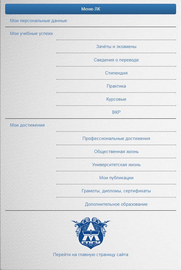 В левой(или верхней для маленьких экранов) части страницы вы видете меню личного кабинета в свёрнутом состоянии, развернуть( так же как и свернуть